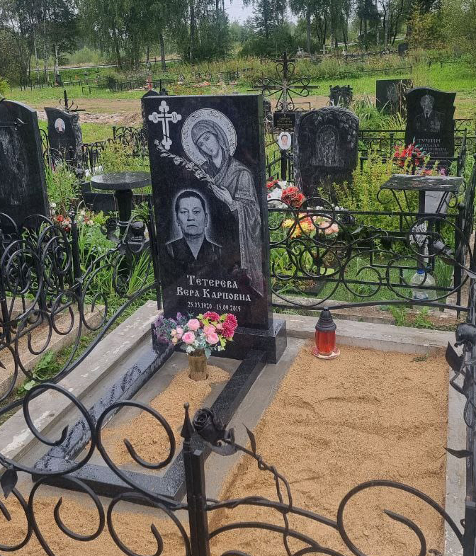 Все переговоры велись по интернету или сотовому телефону. Обговорили цену, выбрали эскиз. Выбирали долго фото, но на памятнике бабушка узнаваема. Еще мастер взял дополнительный заказ — уложить плитку по основанию. Цены разумные и приемлемые.